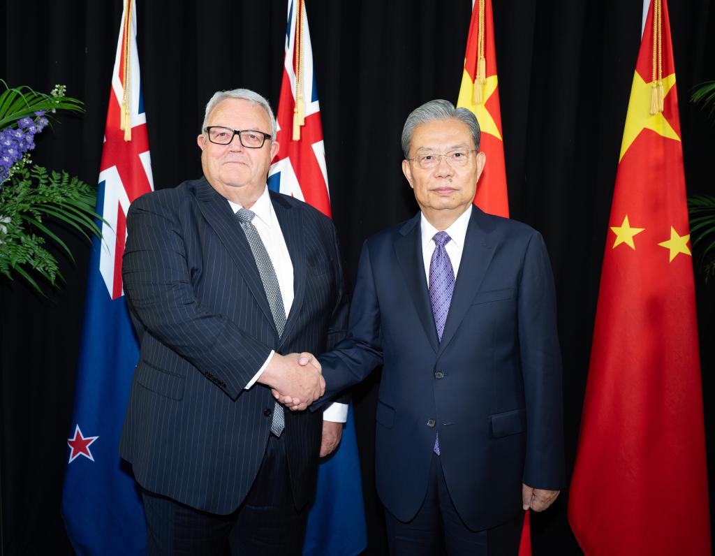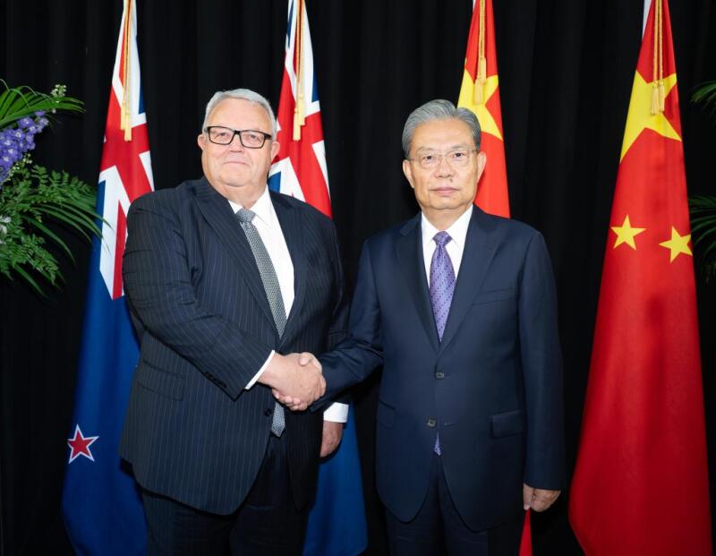 Zhao, chairman of the National People's Congress Standing Committee, met with New Zealand Prime Minister Christopher Luxon in Auckland and held talks with Brownlee in Wellington.