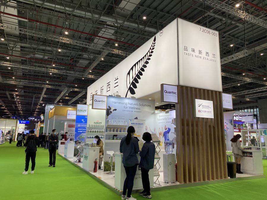 File photo shows the exhibition booth of New Zealand at the third China International Import Expo (CIIE) in Shanghai, east China. (New Zealand Trade and Enterprise/Handout via Xinhua)