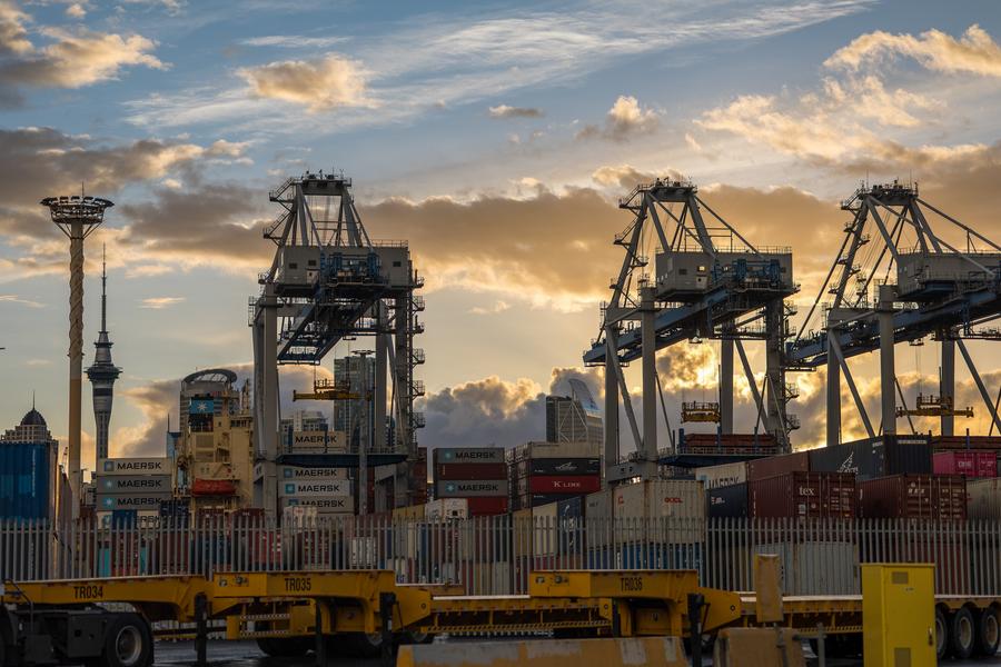 Photo taken on March 23, 2022 shows a view of the port of Auckland, New Zealand. (Photo by Zhang You/Xinhua)