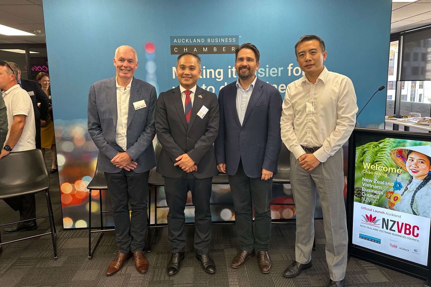 1月28日,驻奥克兰总领馆经商处主任王程光领事出席新西兰越南商业理事会(NZVBC)成立仪式。越南驻新西兰大使潘明江、奥克兰商会首席执行官西蒙·布里奇斯及各国工商界代表50余人出席活动。