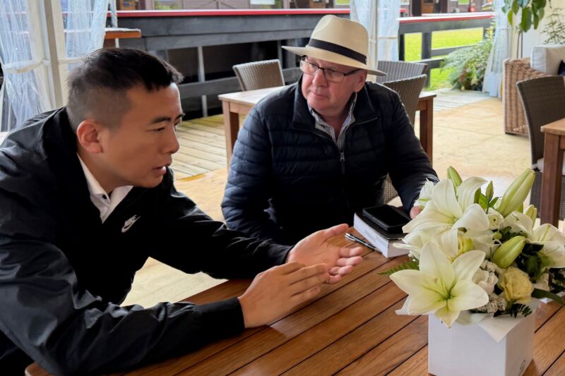 1月27日,驻奥克兰总领馆经商处主任王程光领事参访新西兰纯血马公司卡拉卡销售中心,与公司总经理安德鲁·西布鲁克、新西兰赛马会主席罗素·沃里克交流,调研新西兰马业发展情况。