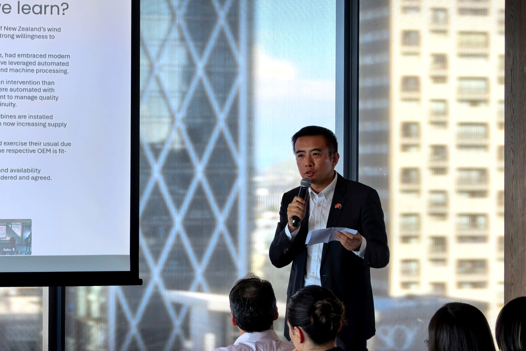 驻奥克兰总领馆经商处主任王程光领事应邀参会,并在互动环节介绍中国2035年国家自主贡献目标和十五五风电发展规划情况。王程光表示,新西兰风力资源丰富,已设定风电装机雄心目标;中国风电企业凭借高效、创新和可靠的产品赢得全球市场;双方在风电领域开展合作,有助于共同应对气候变化挑战。