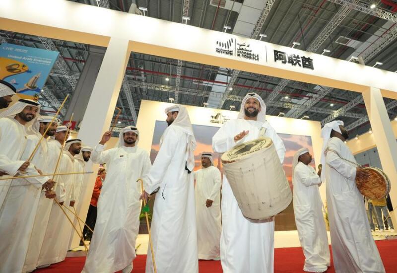 Staff members perform at the pavilion of the United Arab Emirates during the eighth China International Import Expo (CIIE) in east China's Shanghai, Nov. 7, 2025. (Xinhua/Ren Pengfei)