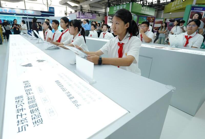 Students try electronic ink screens during the 2025 China International Fair for Trade in Services (CIFTIS) in Beijing, capital of China, Sept. 10, 2025. (Xinhua/Zhang Chenlin)