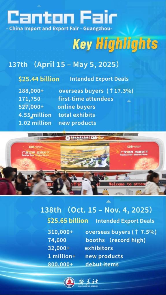 This photo taken on Oct. 15, 2025 shows a scene during the 138th edition of the China Import and Export Fair in Guangzhou, south China's Guangdong Province. (Xinhua/Deng Hua)