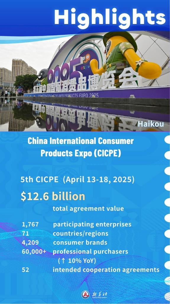 People visit the 5th China International Consumer Products Expo (CICPE) in Haikou, south China's Hainan Province, April 17, 2025. (Xinhua/Zhang Liyun)