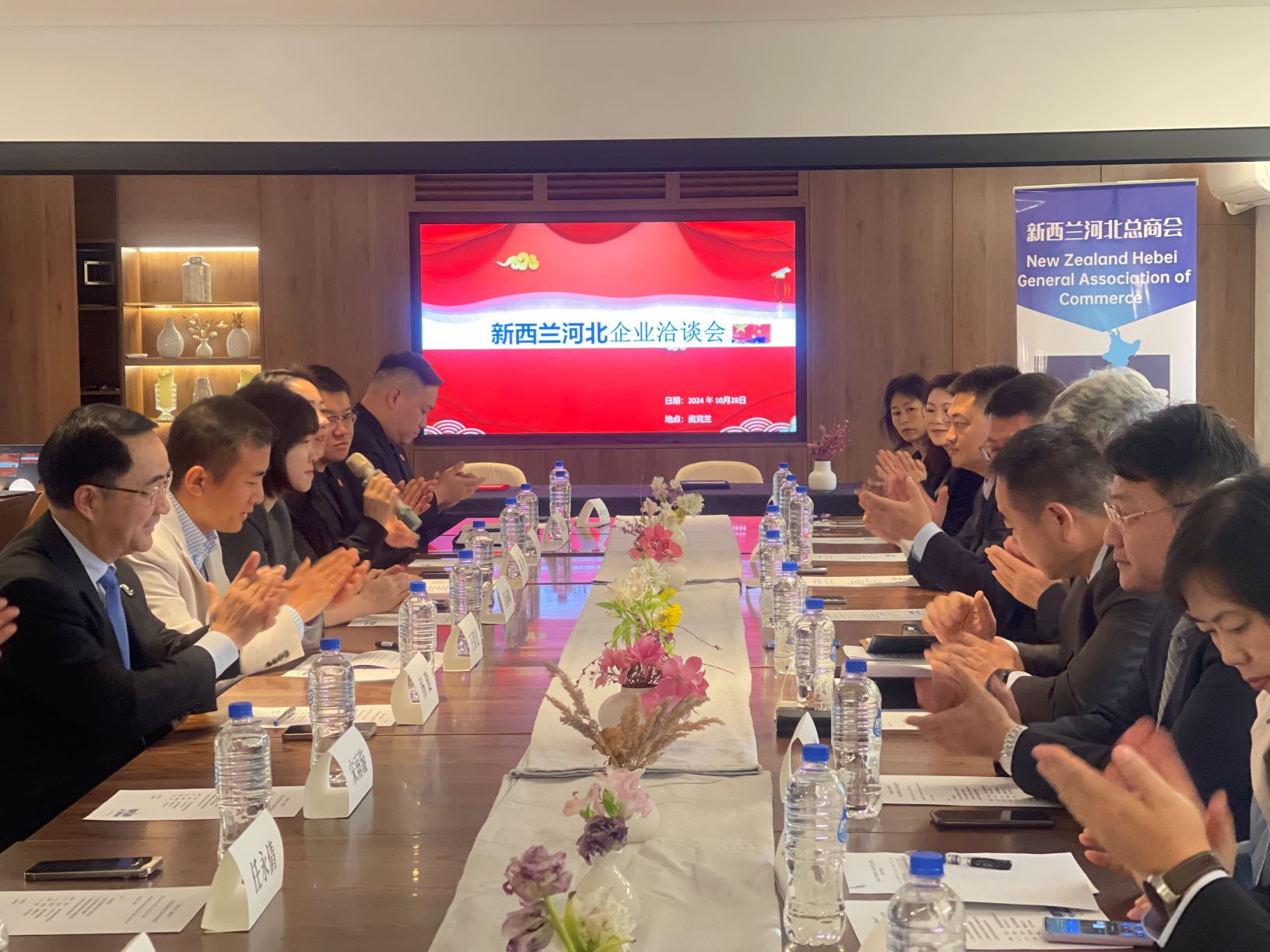 10月28日至29日,驻奥克兰总领馆经商处主任王程光领事、果鹏文领事出席河北企业洽谈会。河北省工商联、河北省海外联谊会及河北民营企业代表团、新西兰河北总商会及河北籍侨商代表参会。