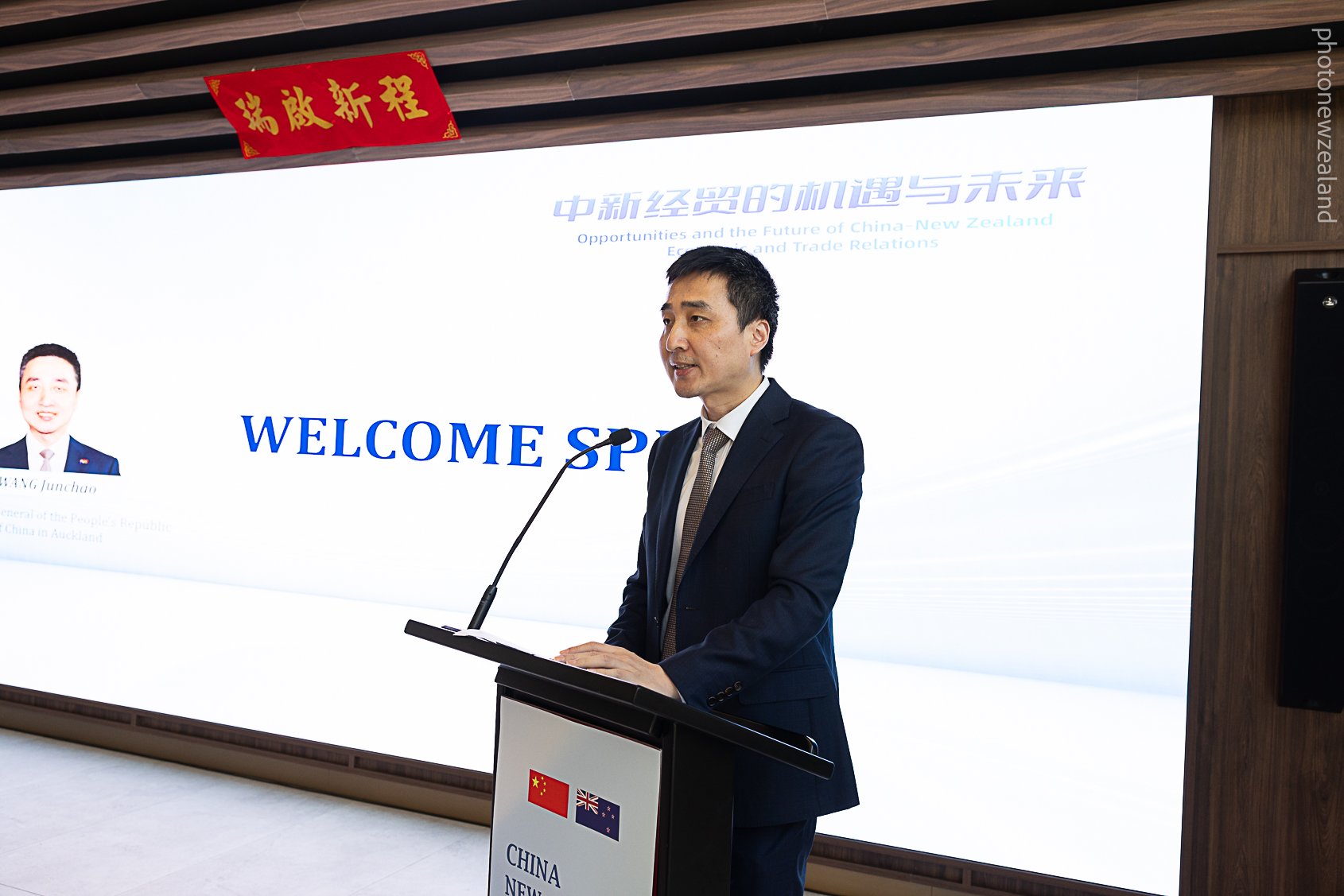 1月29日,王俊超副总领事出席由中国人民大学和奥克兰大学主办的“中新经贸的机遇与未来”学术研讨会并致辞。中国人民大学党委书记张东刚、奥克兰大学亚洲研究院院长菲德勒及两国学界、工商界代表100余人出席活动。经商处主任王程光领事陪同。
